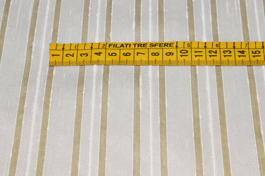 Il fondo viene decorato da una delicata fantasia a righe verticali dove il chiarore del color naturale viene accostato alla neutralità del beige dando vita ad un motivo semplice, ma elegante e raffinato.