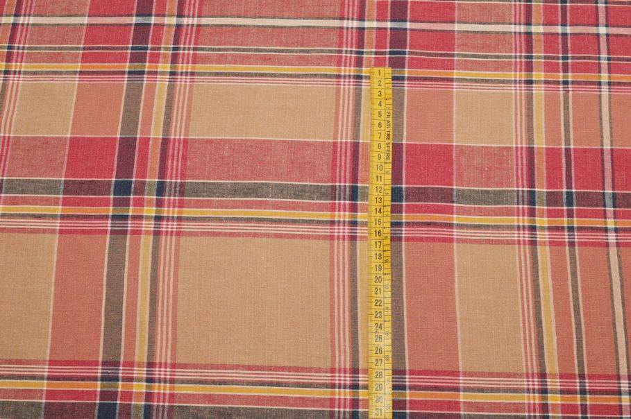 TESSUTO PURO LINO FANTASIA SCOZZESE COLORI CALDI