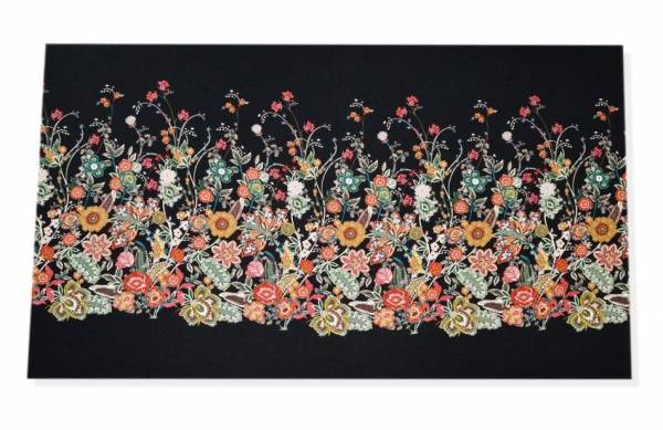 Ogni pannello misura 150x80 cm e vanta di una bellissima fantasia piazzata a tema floreale su fondo nero il quale mette ancora più in evidenza i colori vivaci e birllanti del disegno.