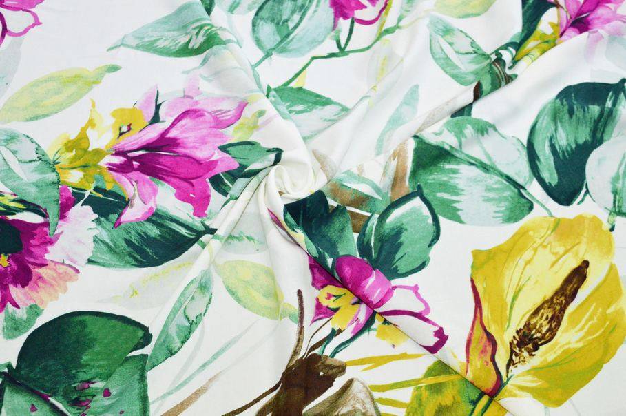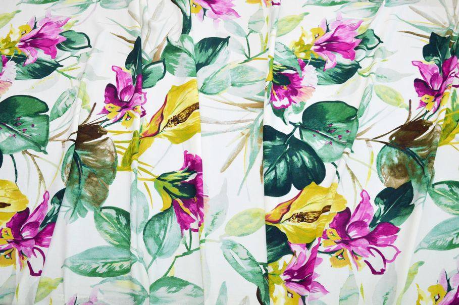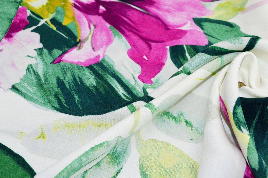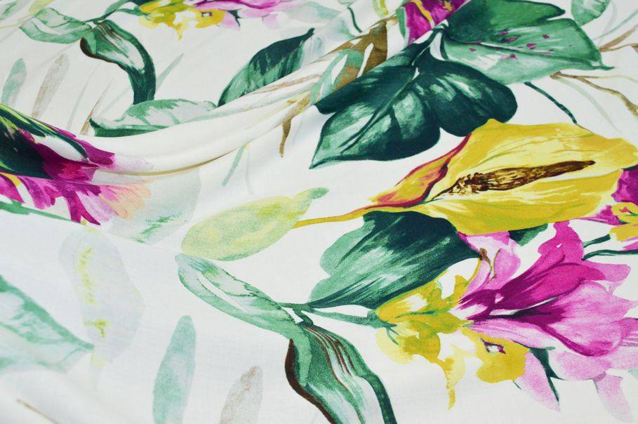 La sua struttura così morbida permette di adoperarlo anche per realizzare capi dai modelli drappeggiati, sinuosi e svolazzanti (aspetto coprente). Il suo design segue le ultime tendenze ed opta per le colorazioni del momento: verde acido ed un brillante fucsia su base naturale.