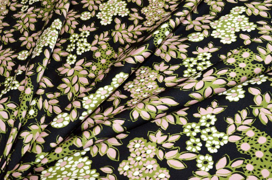 Vendita online tessuti abbigliamento viscosa tessuto pura viscosa fiore verde fondo nero - Tessuti & Stoffe