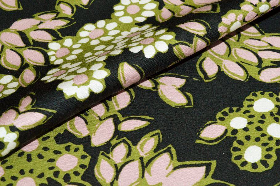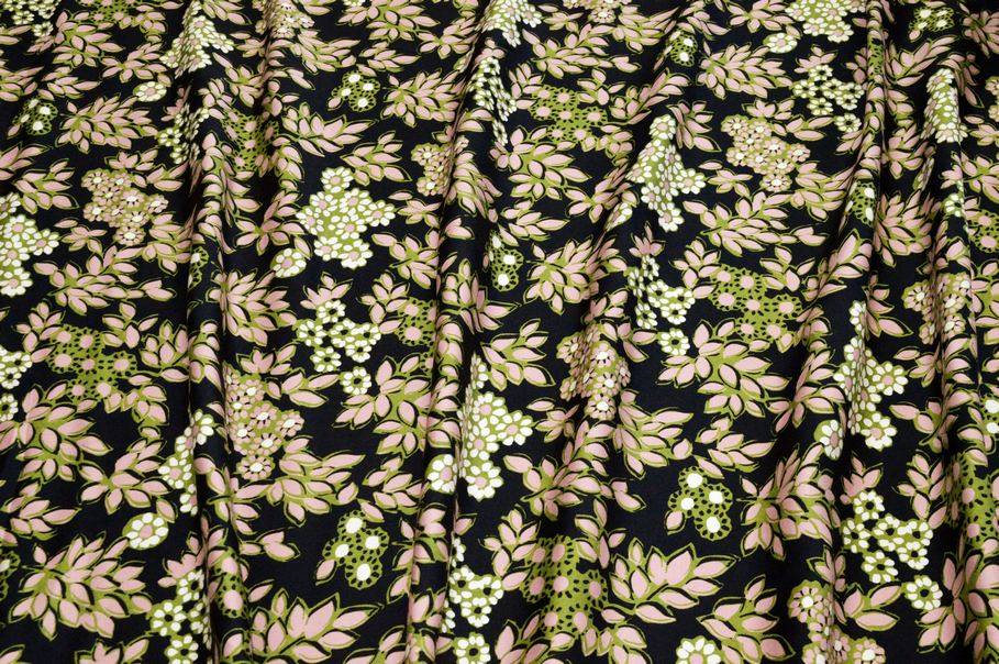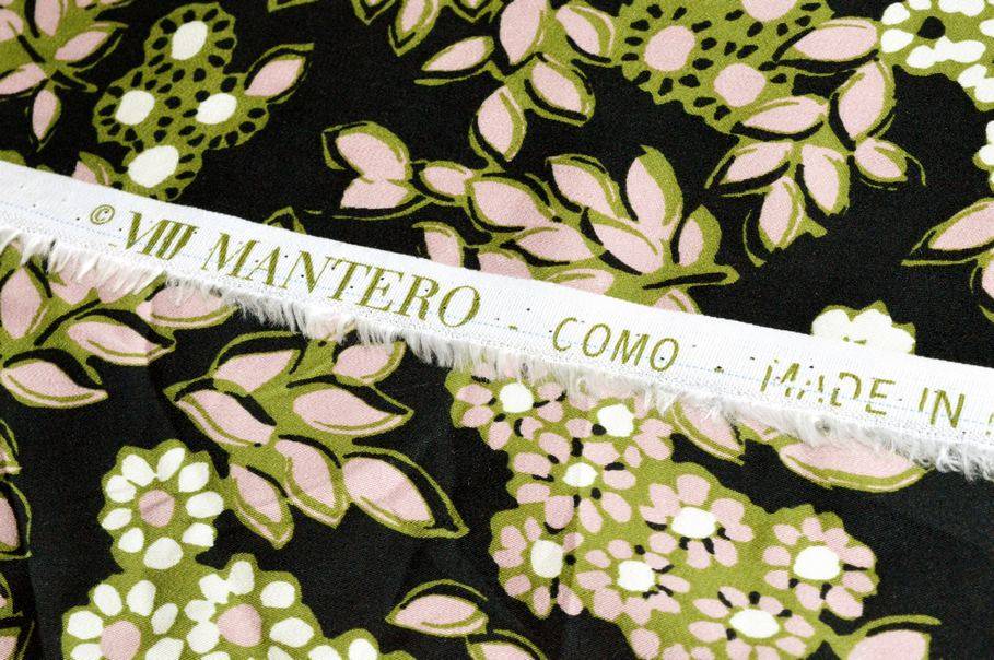 Il tessuto di pura viscosa trova principalmente impiego nelle stagioni primaverili ed estive poiché al tatto risulta essere molto morbido, traspirante e fresco. La sua leggerezza mette a disposizione un'ottima alternativa alle stoffe di cotone, ma nonostante la grammatura leggera riesce ugualmente ad offrire una buona coprenza durante l'indosso. Un'altra caratteristica molto apprezzata è la mano cadente e svolazzante la quale si presta perfettamente per abiti sinuosi o con modelli drappeggiati. Il design si presenta semplice, ma giovanile e sbarazzino allo stesso tempo dove l'intensità del fondo nero viene armoniosamente unita alla brillantezza dei motivi fiorati verdi e rosa. Oltre agli abiti questo prodotto si presta perfettamente anche per la creazione di gonne corte e lunghe, camicette, bluse e pantaloni morbidi.