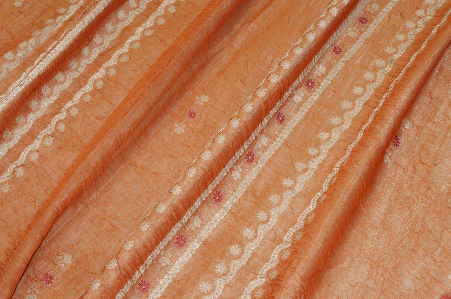 Vendita online tessuti per tende offerta tessuto doppia organza arancio con fiore ricamato - Tessuti & Stoffe
