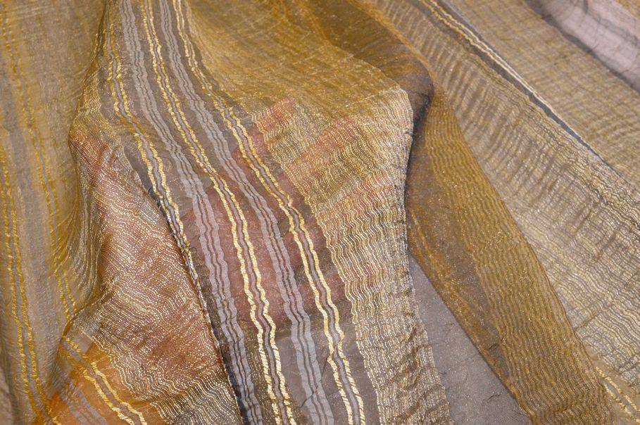 Un'altro pregio di questo prodotto è il design molto particolare. Il fondo viene suddiviso in sottili righe irregolari oro e blu che creano una bellissima sfumatura. Ad impreziosire ancora di più la stoffa è l'aspetto luminoso che, a seconda delle luce, crea splendidi riflessi. Indicato per realizzare tende arricciate per saloni e camere da letto dallo stile classico.