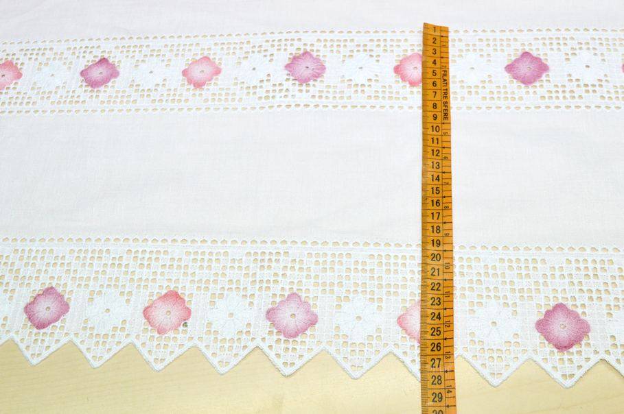Vendita online tessuti per tende tendine confezionate vetro tessuto tendino con incassi pizzo fiorellino rosa - Tessuti & Stoffe