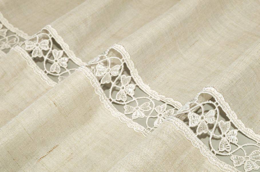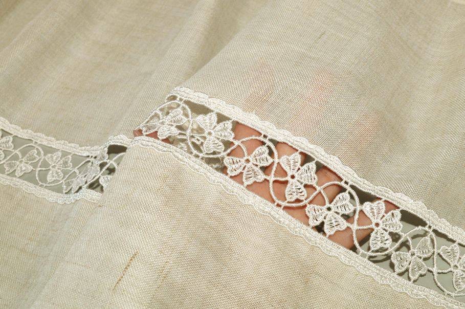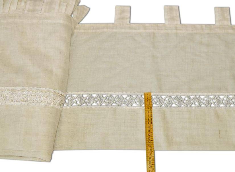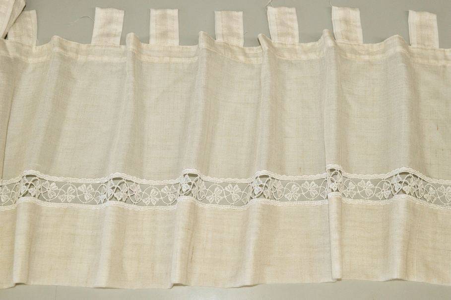 Vendita online tessuti per tende tendine confezionate vetro tessuto mantovana misto lino ecru con incasso pizzo macrame - Tessuti & Stoffe