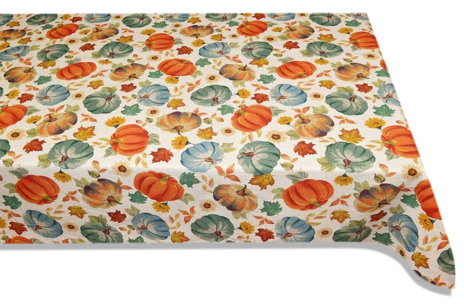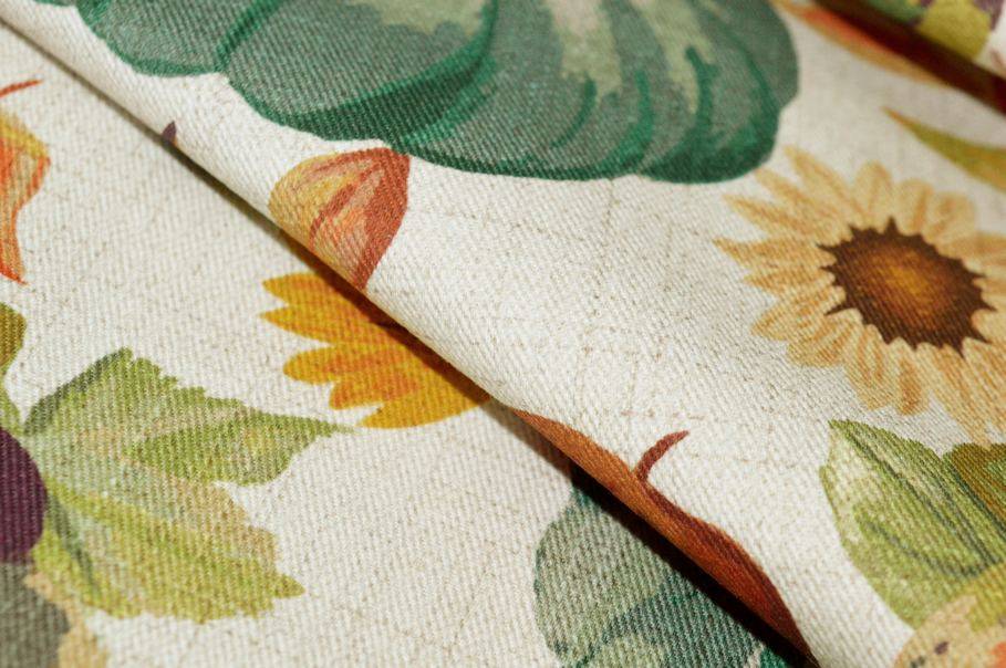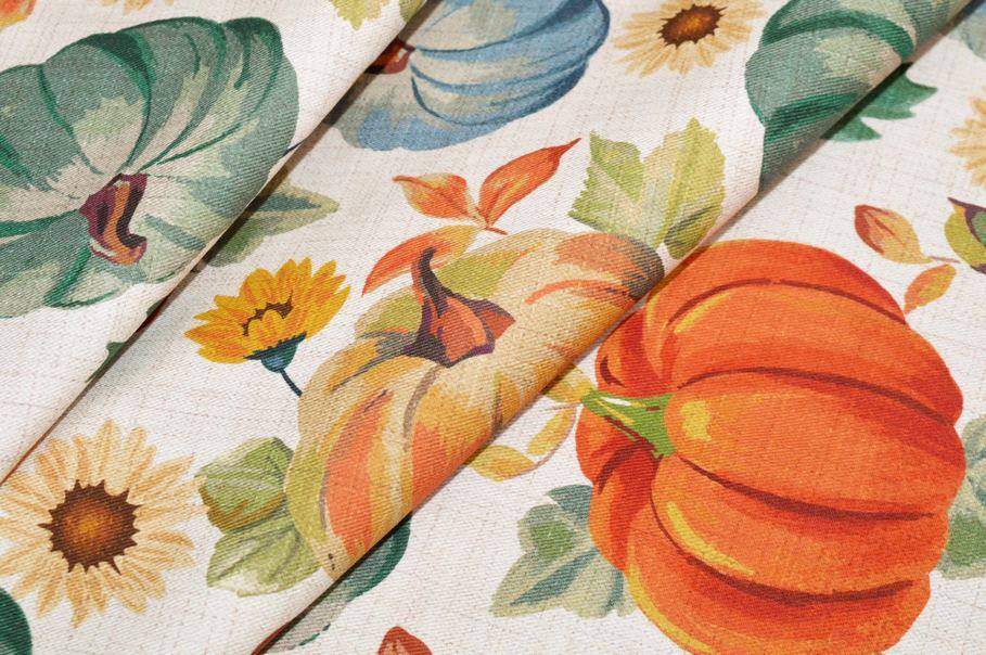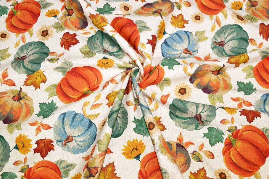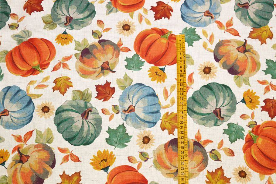 Ottimo tessuto di puro cotone con fondo color ecrù molto chiaro decorato dalla splendida stampa digitale la quale rende i colori più vivi, duraturi nel tempo e resistenti ai lavaggi. La fantasia unisce molteplici elementi e colori autunnali sia dal sottotono freddo come il petrolio, che con sottotono caldo come l'arancio ed il giallo. Di pesantezza idonea per realizzare tovagliati e tovaglioli. Può essere comodamente utilizzata anche per lavori di arredo cucina e arredo casa come copricuscini, mantovane, copricassettoni, presine e tanti altri piccoli progetti di cucito creativo.