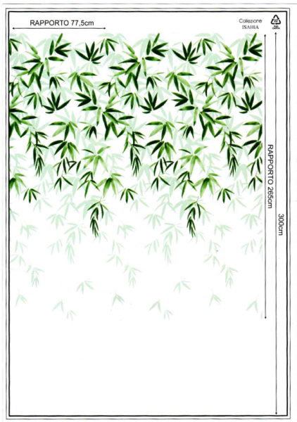 Le foglie vengono colorate dalla bellissima tonalità petrolio che completa l'elegante disegno. Un'altra particolarità di questa lavorazione è l'effetto sfumato. Infatti la fantasia inizia dalla cimosa superiore dove le foglie sono più fitte e si estende diminuendo di intensità fino ad 80 cm dal fondo ricreando l'effetto di una pianta pendente. Indicato principalmente per realizzare tende arricciate di ogni tipologia. Piombato sul fondo.