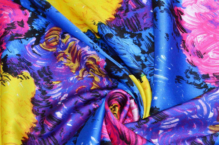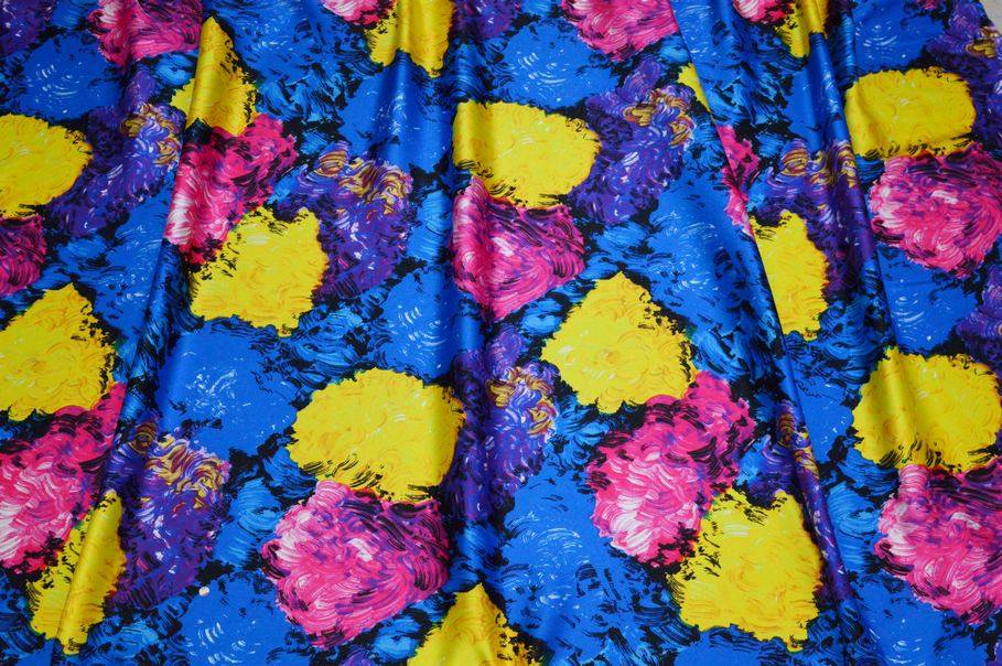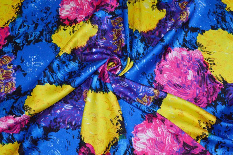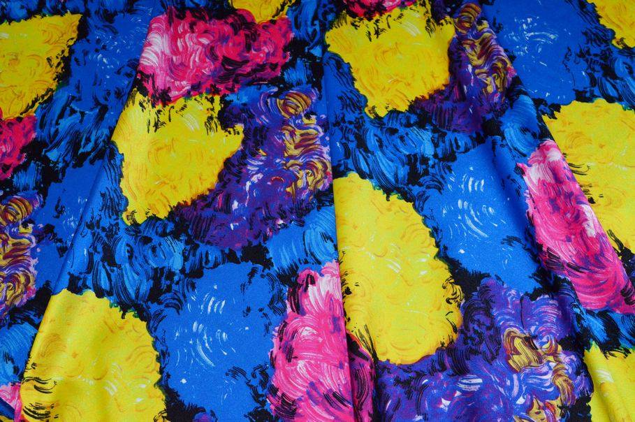 Bellissimo tessuto saglia dalle straordinarie qualità estetiche. La stoffa sfoggia infatti una bellissima ed originale fantasia astratta realizzata da tratti di colore che ricreano delle pennellate dando vita ad un vero e proprio effetto dipinto. Anche la scelta cromatica è originale ed unica nel suo genere, caratterizzata da colorazioni sgargianti e vivaci.