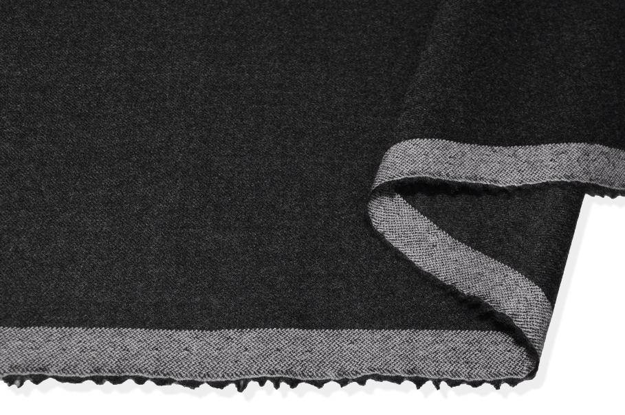 Tessuto in flanella composto totalmente da ottimi filati naturali di pura lana che ne definiscono l'alta qualità e conferiscono alla stoffa una bellissima mano, calda e pregiata. Presenta infatti una superficie estremamente pettinata.