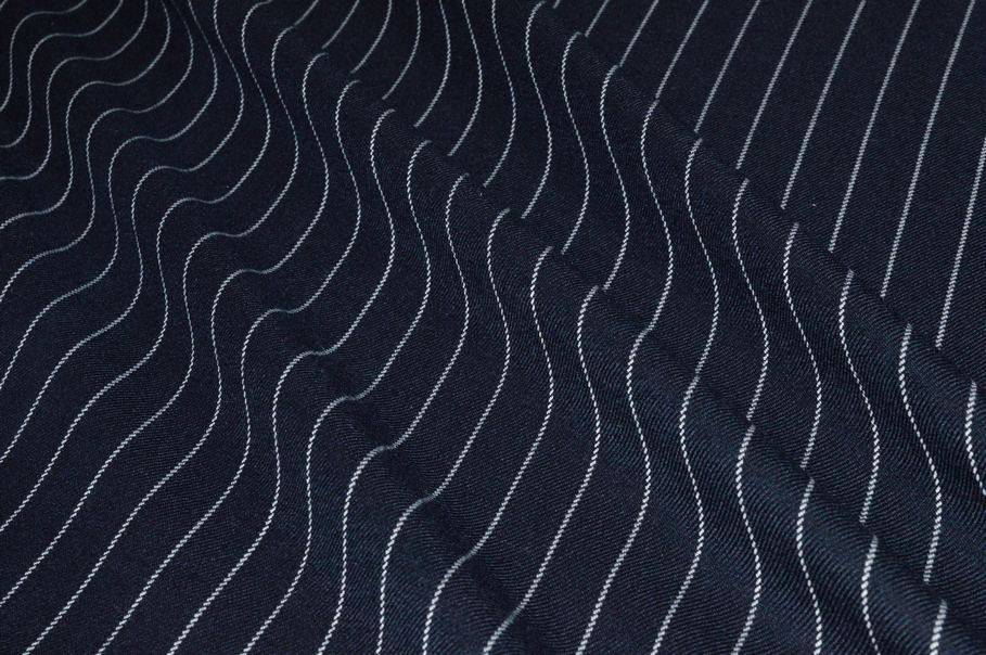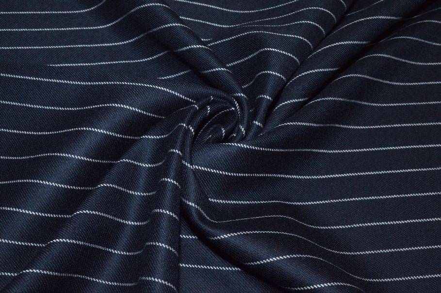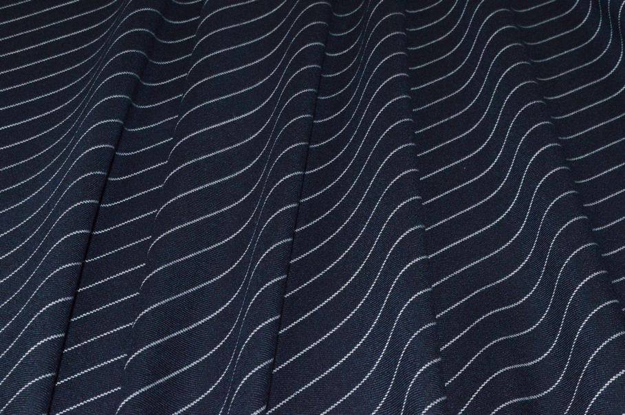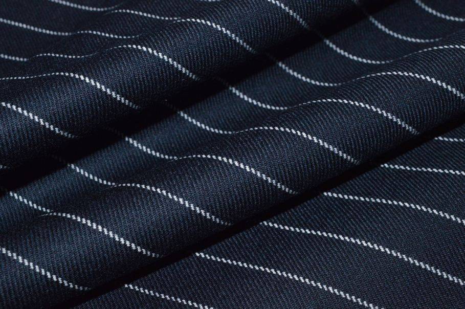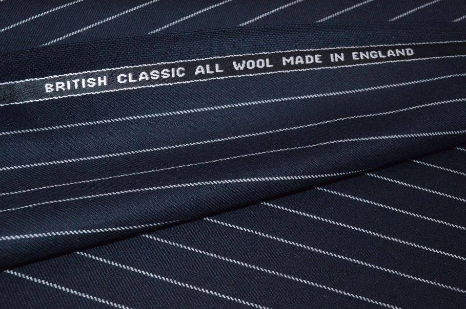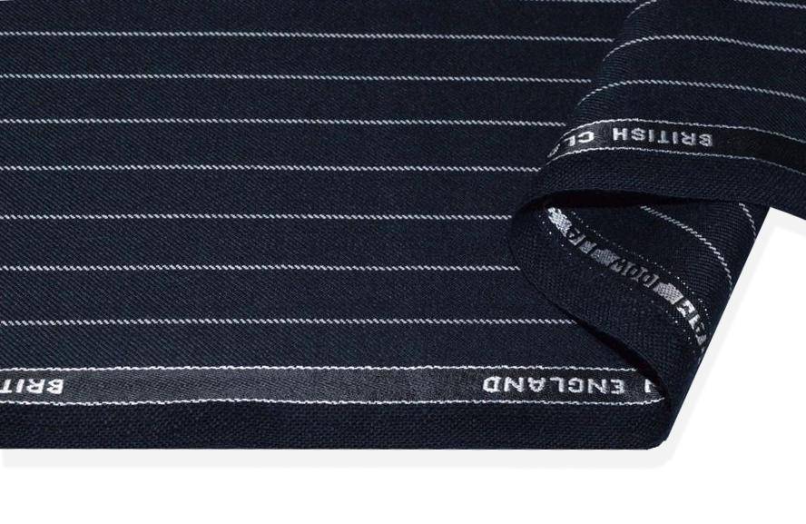 Ottimo tessuto 100%Mady in England realizzato con filati di pura lana lavorati fino ad ottenere un prodotto dalla mano liscia e pettinata. La sua grammatura media ne permette un vasto utilizzo poiché il capo può essere adattato ed indossato in tutte e quattro le stagioni . La colorazione scelta per il fondo è un classico ed intenso blu decorato dalla sottile gessatura orizzontale (perpendicolare alla cimosa). Il design è unisex, infatti è idoneo sia per indumenti maschili che femminili.