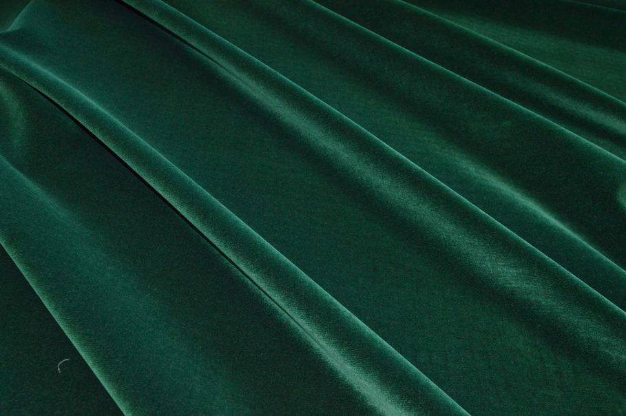 Ottimo velluto liscio di puro cotone dall'aspetto elegante e lussuoso noto per la sua tipica superficie morbida e setosa. La particolarità di questo materiale sta nell'avere un aspetto luminoso che cattura la luce in modo delicato donando alla stoffa un aspetto raffinato e di grande classe. La mano si presenta strutturata e sostenuta al tatto. La colorazione scelta per il fondo è un bellissimo verdone, una tonalità intensa di verde scuro che dona al velluto maggiore bellezza e pregio.