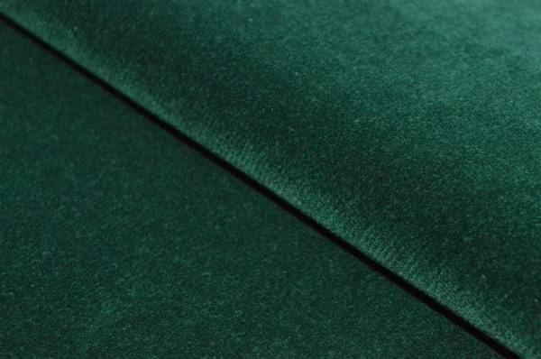 Ottimo velluto liscio di puro cotone dall'aspetto elegante e lussuoso noto per la sua tipica superficie morbida e setosa. La particolarità di questo materiale sta nell'avere un aspetto luminoso che cattura la luce in modo delicato donando alla stoffa un aspetto raffinato e di grande classe. La mano si presenta strutturata e sostenuta al tatto. La colorazione scelta per il fondo è un bellissimo verdone, una tonalità intensa di verde scuro che dona al velluto maggiore bellezza e pregio.