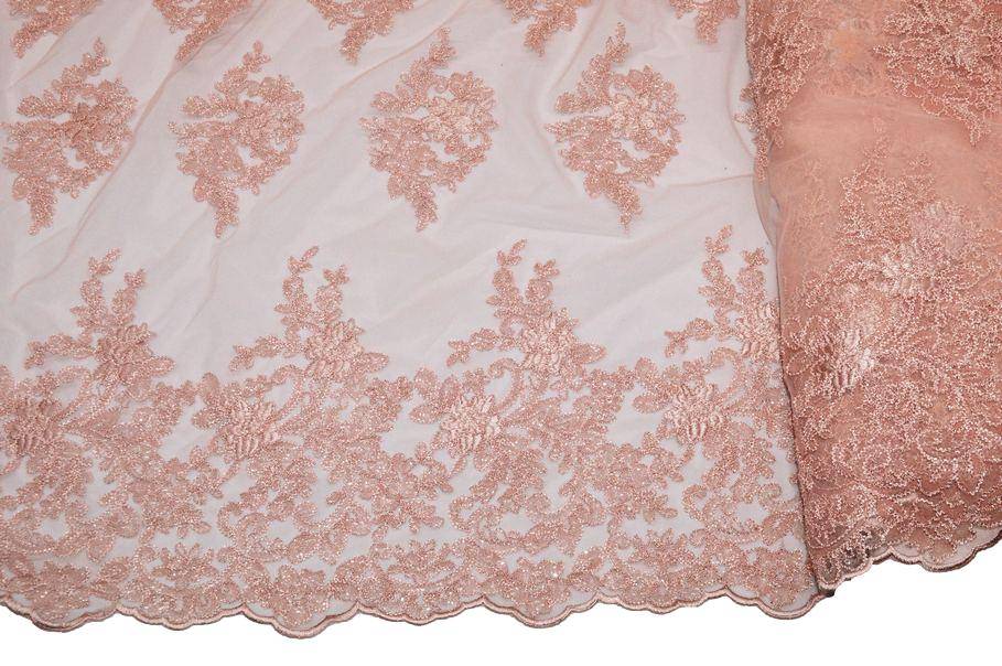 Questo tessuto tulle ricamato è una scelta elegante e sofisticata, ideale per abiti da sposa, da cerimonia e per eventi formali. La sua base in tulle trasparente è impreziosita da un ricamo floreale in rilievo che dona al tessuto un aspetto di classe, mentre le cimose smerlate su entrambi i lati aggiungono un tocco ulteriore di raffinatezza. La sua morbidezza e la caduta fluida lo rendono perfetto per creare abiti che avvolgono il corpo con grazia, ed è l'ideale anche per realizzare capi con dettagli vedo/non vedo, grazie alla trasparenza delicata. Inoltre, il tessuto è arricchito da paillettes cucite con cura, che aggiungono un raffinato brillio rendendo ogni creazione ancora più preziosa ed elegante.