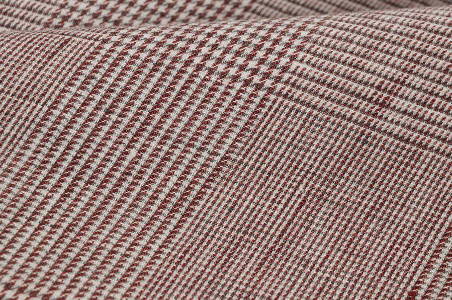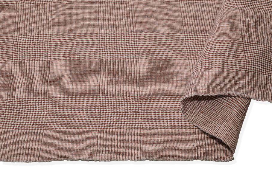 Il tessuto in puro lino si propone come una scelta ideale per chi cerca una stoffa fresca, naturale e completamente traspirante, perfetta per le stagioni primaverili ed estive. La sua struttura unica e il comfort che offre a contatto con la pelle lo rendono una valida alternativa al cotone. Il disegno principe di galles, che gioca sui toni bordeaux e grigio, equilibra classicità e modernità. La stoffa infatti può essere adoperata per realizzare indumenti sia casual che formali.
