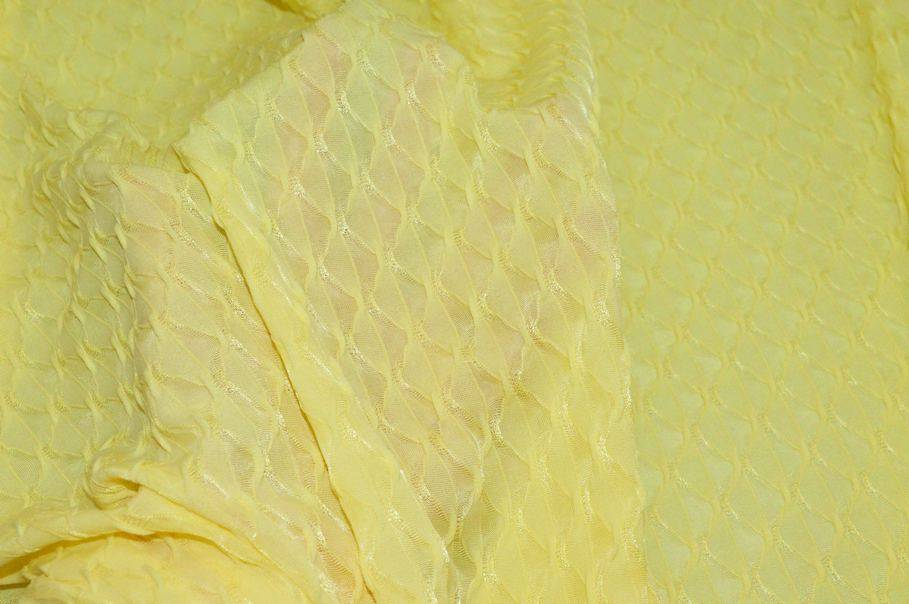 La caratteristica distintiva di questa maglina è il suo design unico caratterizzato dal bellissimo effetto operato creato da piccoli rombi in rilievo che aggiungono particolarità e movimento alla superficie. Al tatto il tessuto si presenta semicoprente, morbido, leggero e fluido, con una caduta naturale. Perfetto per la realizzazione di capi di maglieria vari come magliette, top elastici, vestitini e altri indumenti primaverili ed estivi.