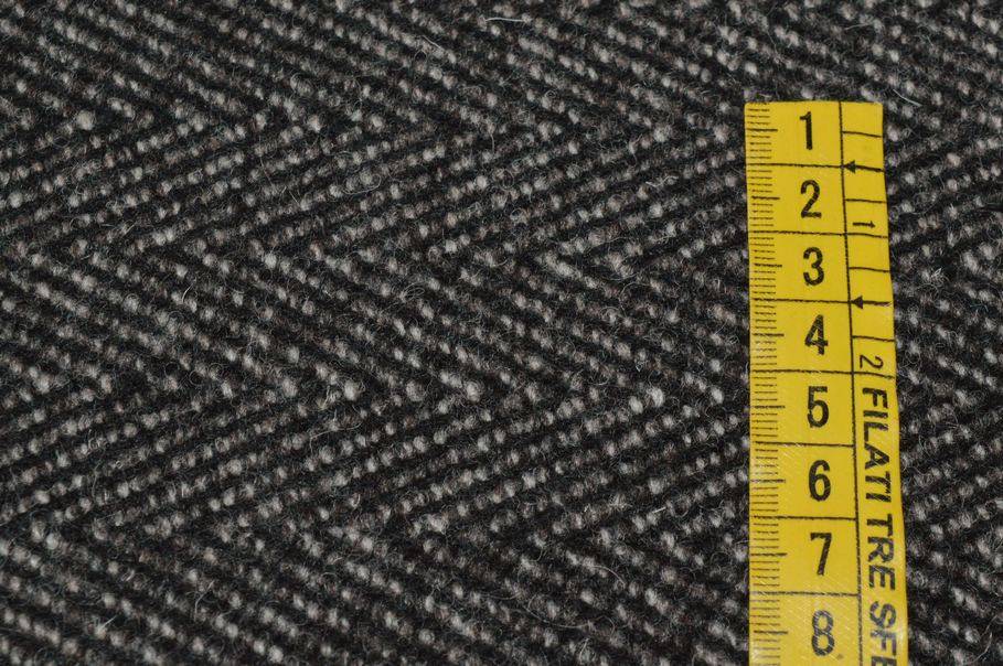 Questo tessuto è realizzato interamente con filati 100% naturali. La materia scelta è una pregiata lana pura, estremamente morbida e calda al tatto. La sua pesantezza, unita alla qualità della fibra, lo rende perfetto per la creazione di capispalla ideali per le stagioni autunnale e invernale. Non solo eccelle in termini di qualità, ma anche dal punto di vista estetico, con un design raffinato e versatile. Il motivo a spina di pesce, nei toni grigio e nero, è arricchito da sottili fili beige e marroni, creando un effetto visivo ricco e sofisticato. Questo tessuto si adatta perfettamente a look sportivi, casual o formali, offrendo infinite possibilità di abbinamento. In particolare, è ideale per la realizzazione di giacconi e cappotti dal carattere elegante ma contemporaneo.