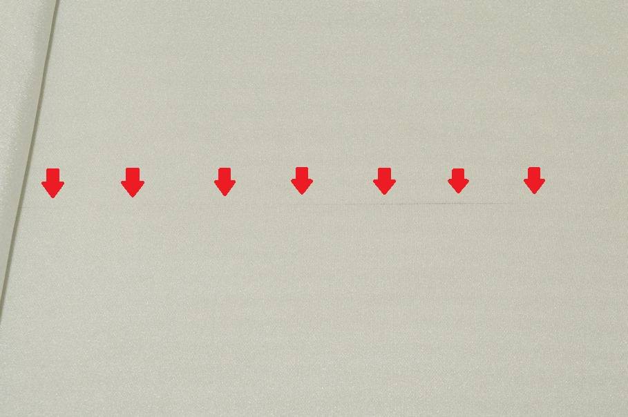 Si segnala che il tessuto presenta un difetto: una rigatura centrale nera che si ripete lungo tutta la lunghezza disponibile. La rigatura è situata a 1,10 metri dalla cimosa superiore. Il resto del tessuto è completamente intatto e utilizzabile, pertanto, per evitare sprechi, viene venduto a un prezzo inferiore.