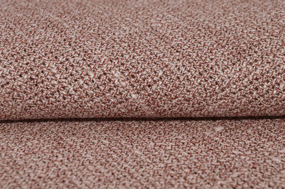 Tessuto realizzato da filati di lino mescolati alla lana che conferisce alla stoffa una mano secca e ruvida al tatto. La trama larga presenta le fiammature caratteristiche del lino. Presenta inoltre un effetto melange che mescola un filo beige chiaro ad uno bordeaux. Grazie alla sua grammatura media è perfetto per la creazione di giacchette uomo/donna, pantaloni larghi e gonne.
