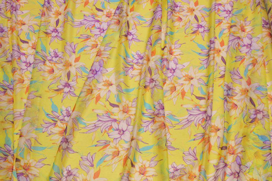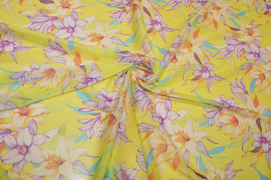 TESSUTO GEORGETTE SETA STRETCH MOTIVO FLOREALE GIALLO