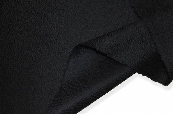 Tessuto di puro cashmere zibellinato nero di mano estremamente morbida e calda. La superficie è soffice e lucente, tipica di questo materiale. Presenta inoltre una bellissima zibellinatura a campo pieno che aumenta il pregio e la bellezza estetica del prodotto.