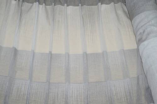 Tessuto per tende con trama effetto lino che riproduce fedelmente l’aspetto naturale del lino, pur essendo realizzato in fibra sintetica.