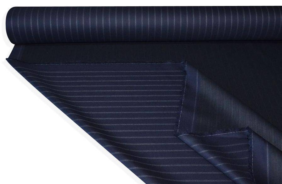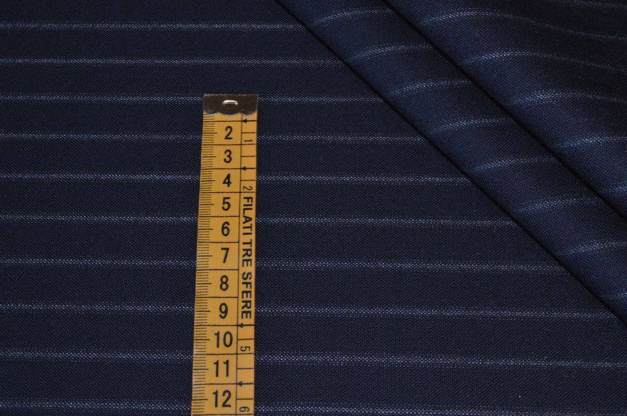 Il design propone un elegante motivo gessato orizzontale su base blu. La particolarità di questa gessatura sta nel fatto che non è la classica riga continua, bensì è formata da un motivo puntinato, che la rende originale e distintiva. Misura gessatura 1,5 cm.