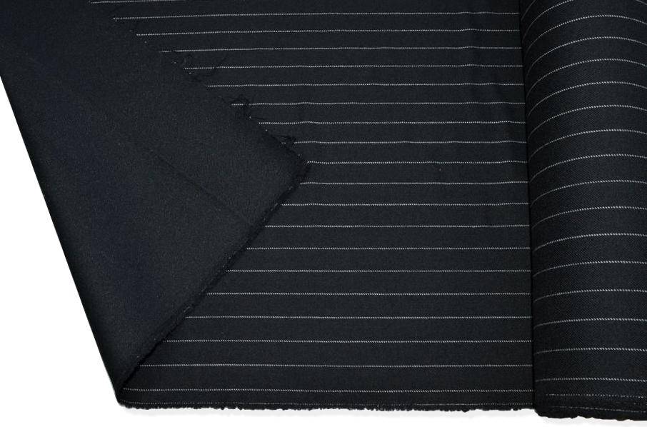TESSUTO GABARDINE PURA LANA GESSATO NERO ADESIVATO