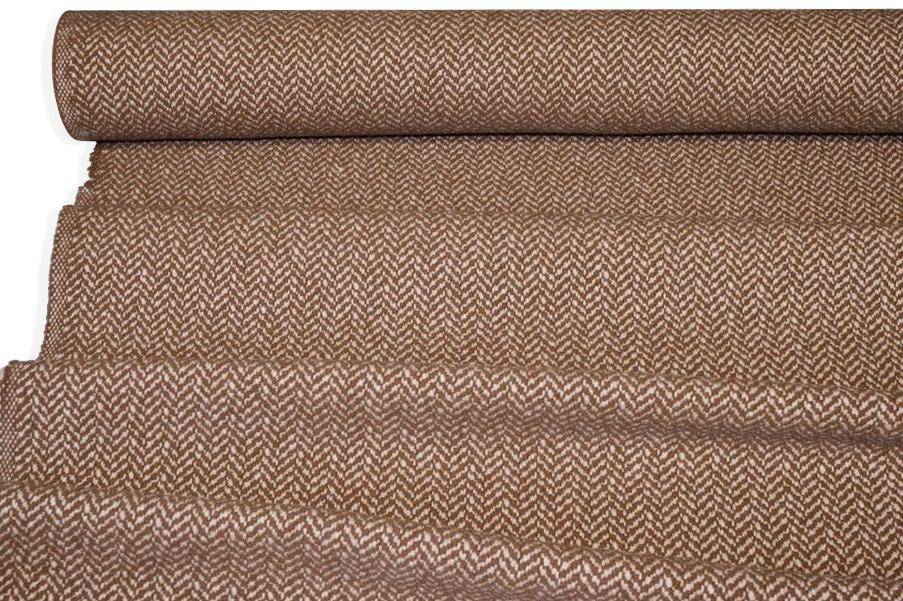 La particolarità di questo tessuto è il motivo a spina di pesce, proposto in un'originale tonalità tabacco. Rapporto spinatura 2 cm.