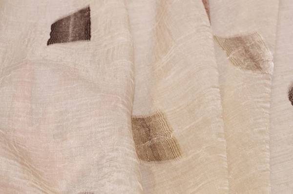 Perfetto per ambienti classici, questo tessuto si distingue per il fondo completamente beige raffinato e luminoso, impreziosito da un ricamo astratto a motivo geometrico. La decorazione alterna diverse sfumature di marrone, dal marrone chiaro fino al testa di moro, creando un effetto elegante.