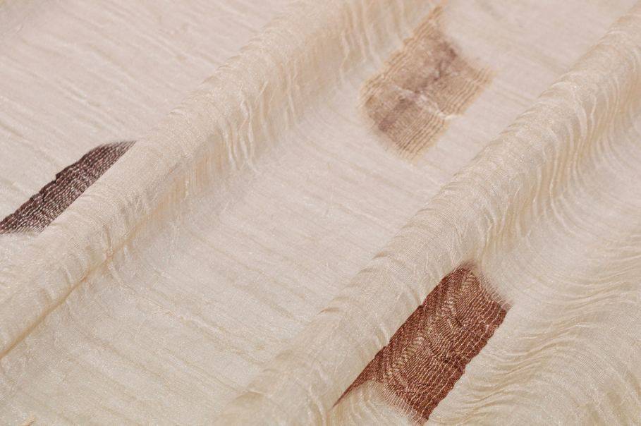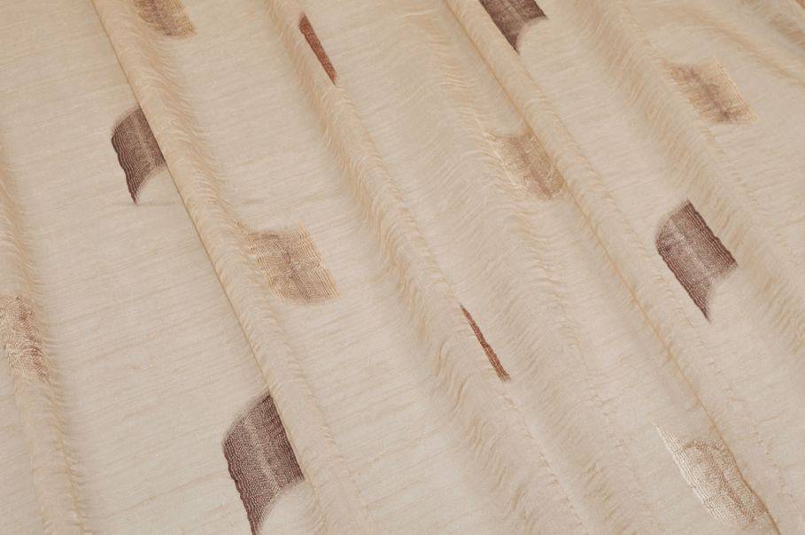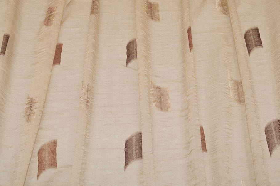 Perfetto per ambienti classici, questo tessuto si distingue per il fondo completamente beige raffinato e luminoso, impreziosito da un ricamo astratto a motivo geometrico. La decorazione alterna diverse sfumature di marrone, dal marrone chiaro fino al testa di moro, creando un effetto elegante.