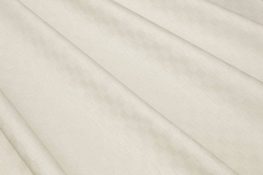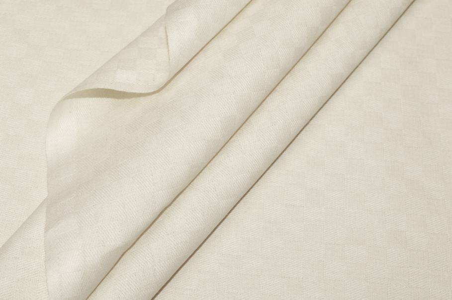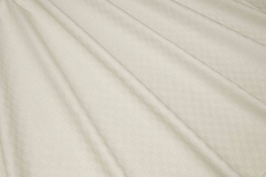 La particolarità di questa stoffa deriva dalla lavorazione in tono composta da piccoli scacchetti che vanno a comporrere una quadrettatura effetto dama, da qui prende il nome di Damina. Colorazione panna (non bianco ottico).