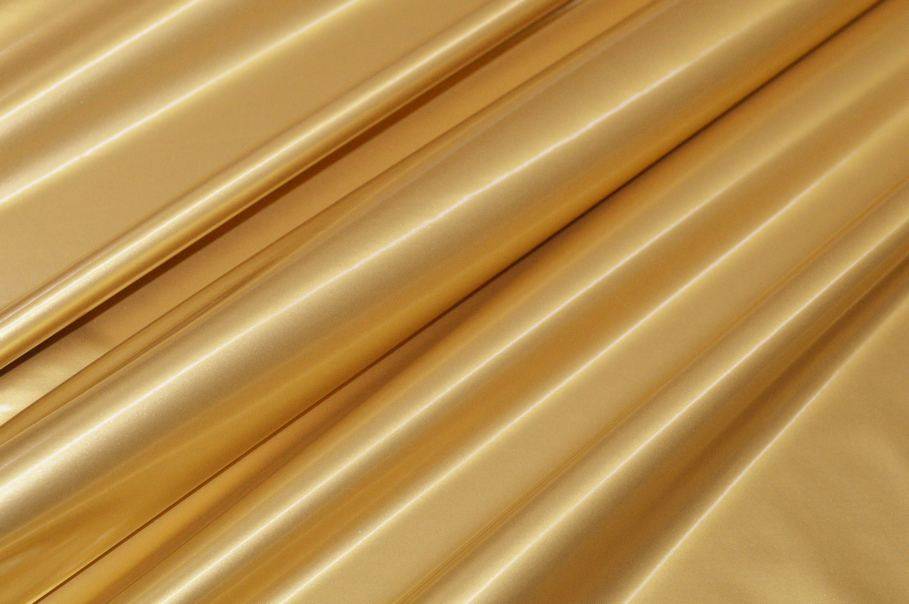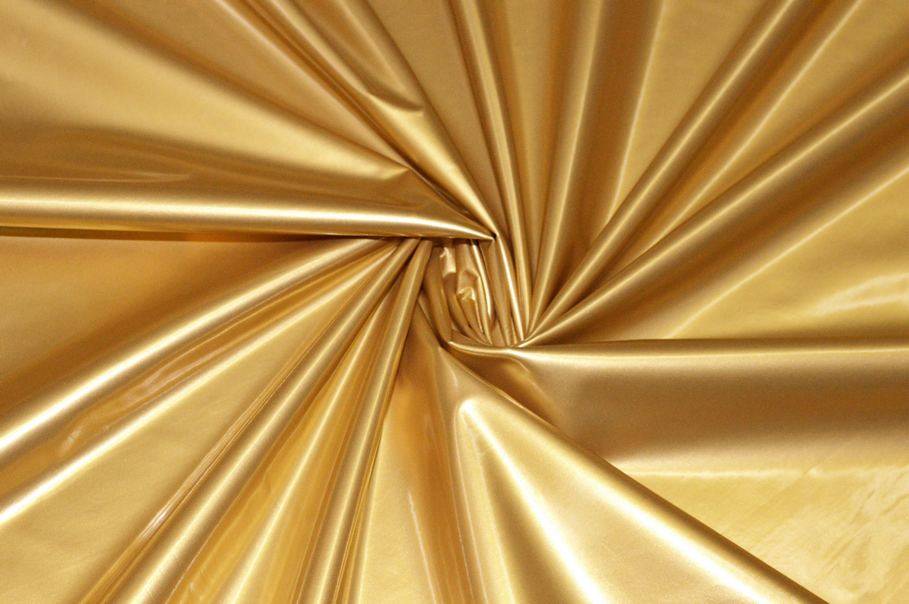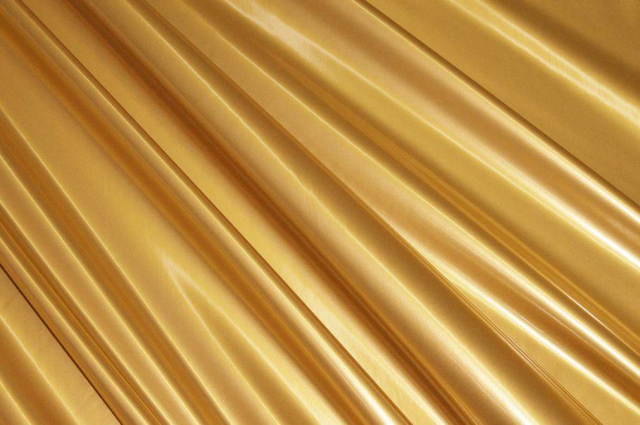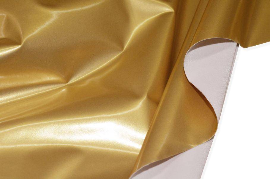 Tessuto in ecopelle con superficie dorata con alta resistenza alle abrasioni che ne permette un uso duraturo nel tempo senza perdere la brillantezza e la solidità del colore.