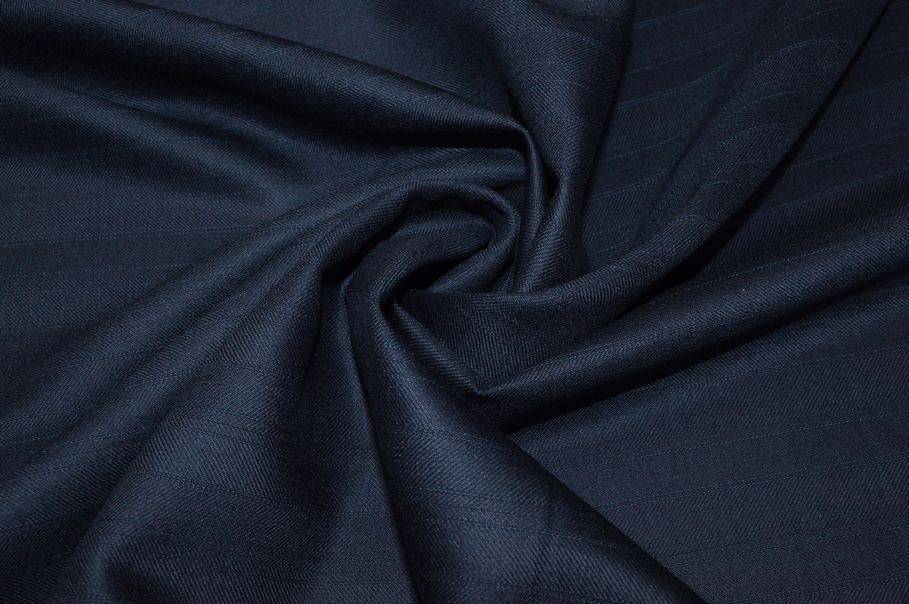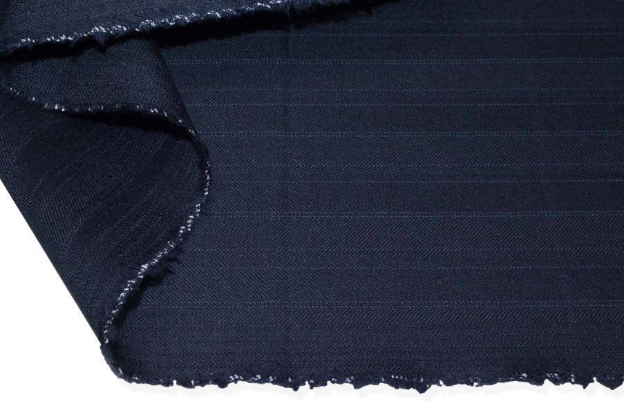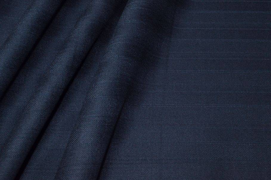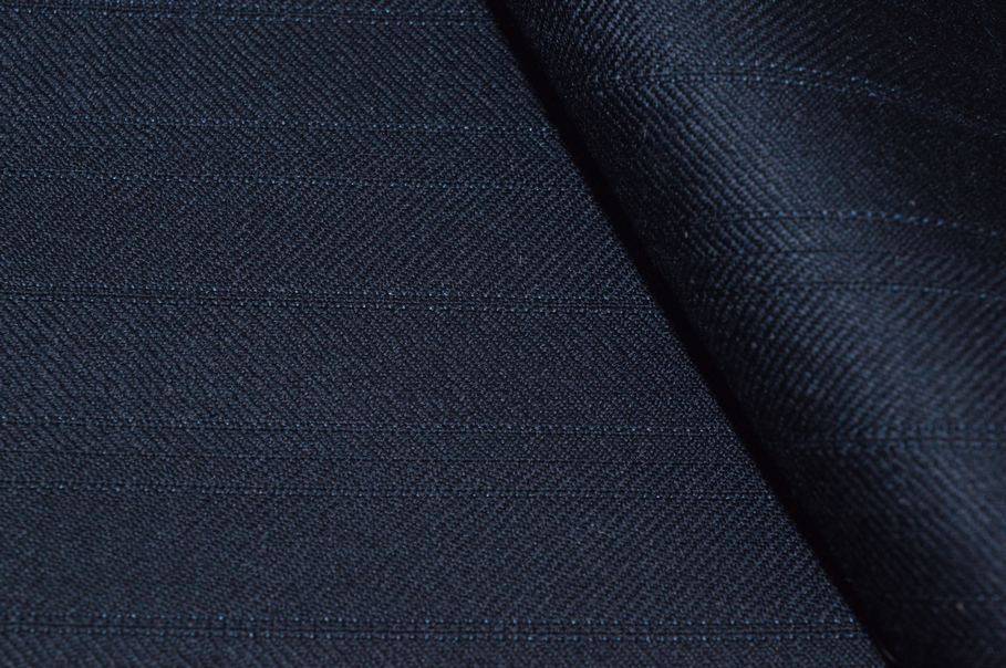 Tessuto Tasmania blu(tonalità molto scura) con disegno tono su tono, caratterizzato da una mano morbida e compatta tipica del Tasmania. La lavorazione a motivo tono su tono aggiunge profondità e raffinatezza al tessuto, conferendo un effetto elegante ma discreto.