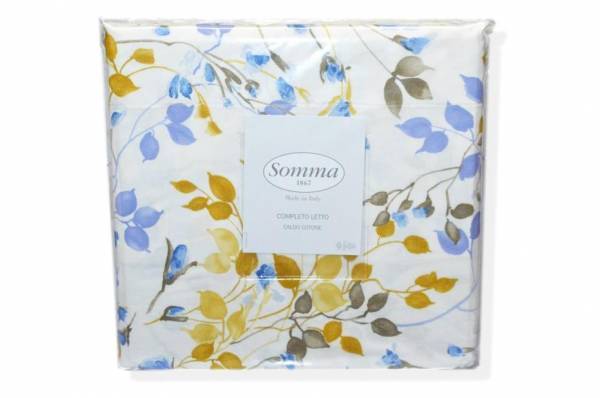 Composizione tessuto 100%caldo cotone. Misura lenzuolo superiore cm 250x285, lenzuolo sotto cm 175x200 con angoli, n. 2 federe cm 50x80