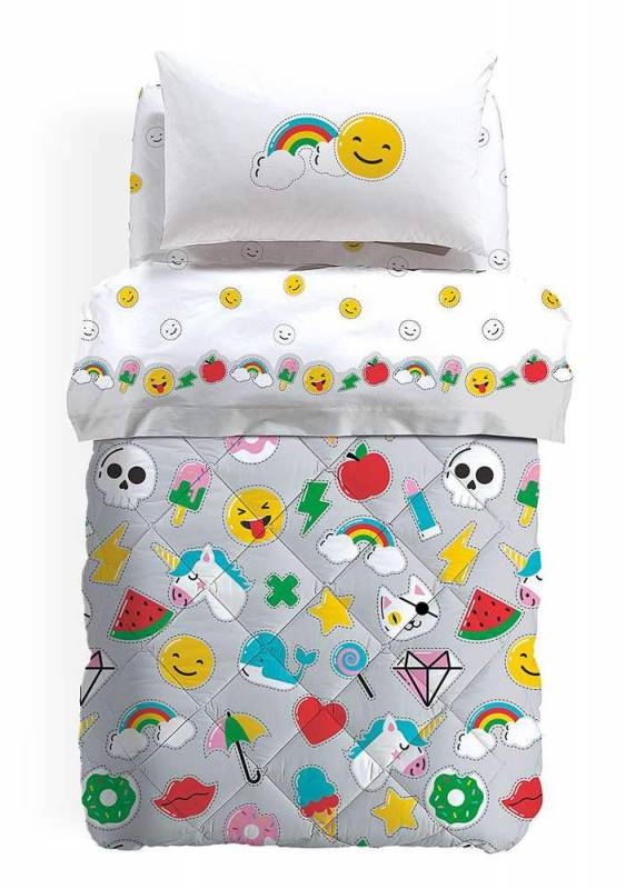 Composizione tessuto 100% puro cotone, imbottitura 100% fibra anallergica di poliestere da 320 gr/mq. Misura 165x260 cm.