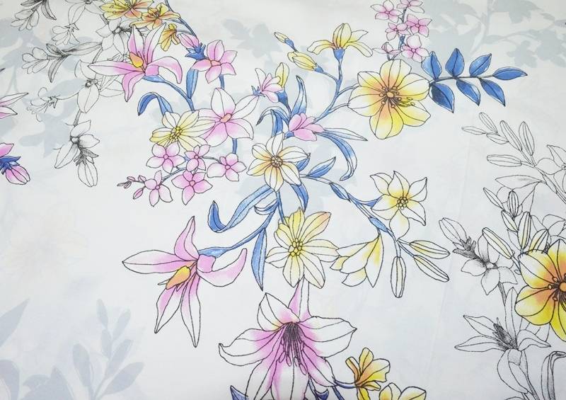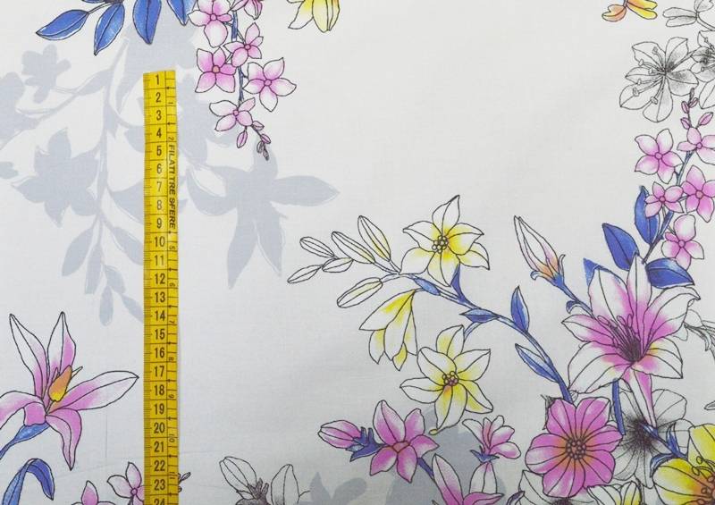 Il nostro tessuto in cotone stretch fantasia floreale su fondo bianco è la scelta ideale per chi desidera un materiale fresco, comodo e perfetto per la bella stagione.