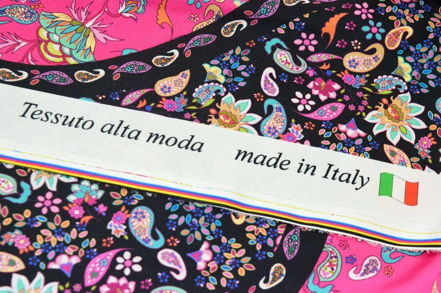 Bellissimo rasatello elasticizzato 100%Made in Italy, leggero e liscio, con una bella caduta che garantisce comfort e ottima vestibilità. Coprente ed elegante una volta indossato si distingue per la superficie luminosa impreziosita da una vivace fantasia cashmere nei toni del giallo e del fucsia, che regala un aspetto unico, vivace e di grande impatto visivo.