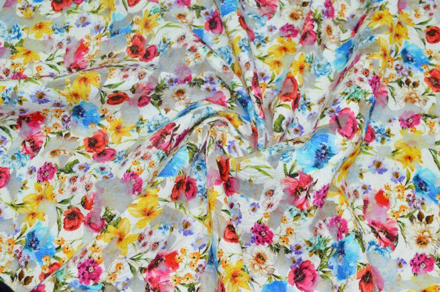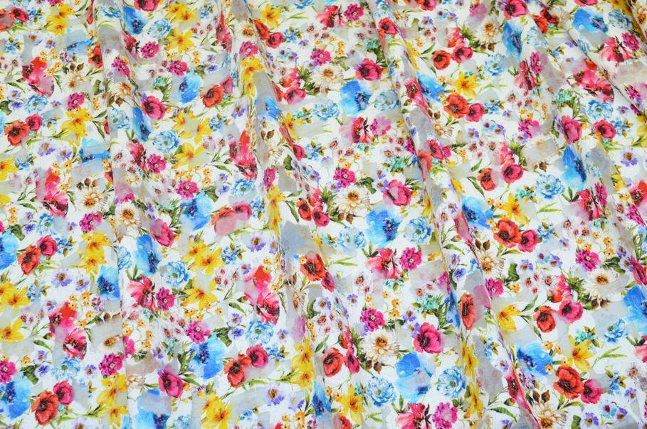 TESSUTO VISCOSA DEVORE' FIORE MULTICOLOR