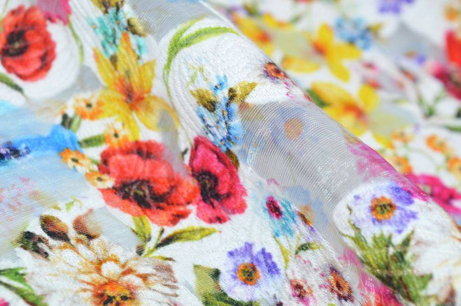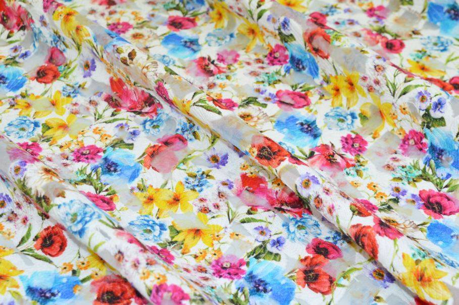 Vendita online tessuti abbigliamento georgette / chiffon dèvorè tessuto viscosa devore' fiore multicolor - Tessuti & Stoffe
