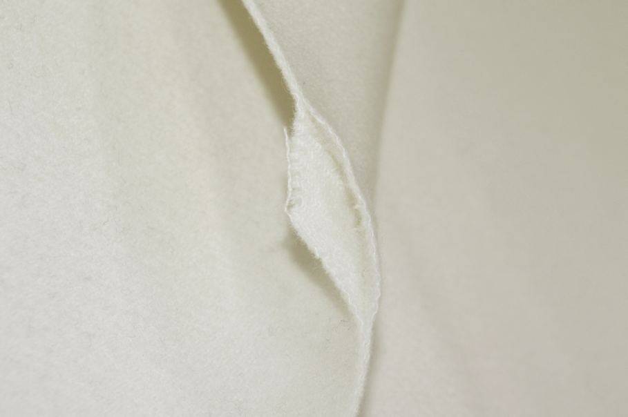 Tessuto double in pura lana colore panna, dalla mano calda, avvolgente e morbida. La struttura double nasce dall’unione di due strati di tessuto, facilmente divisibili come mostrato nella foto dimostrativa.
