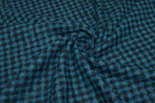 Tessuto in pura lana caratterizzato dall'iconica quadrettatura tartan nei toni del verde e del nero. La superficie è morbida e piacevole al tatto, con una mano compatta e leggermente elastica che garantisce comfort durante l'indosso dei capi realizzati con questa stoffa.