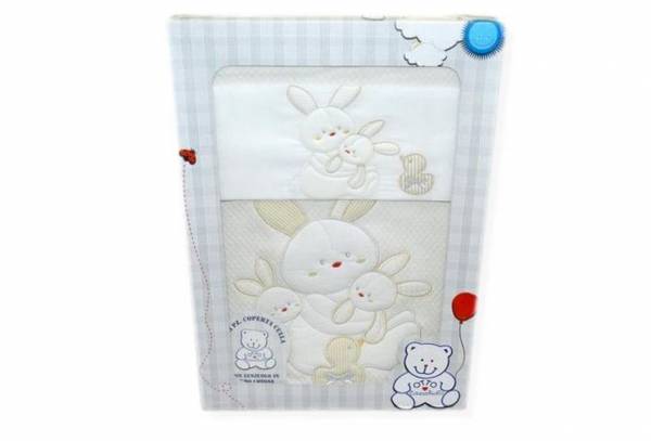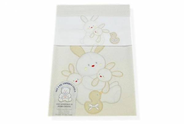 SET 3 PEZZI COPERTA CULLA DISEGNO CONIGLIETTI BEIGE