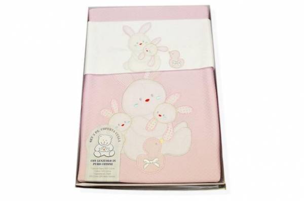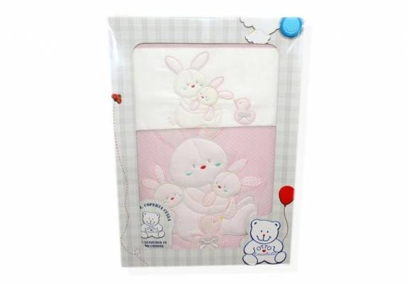 SET 3 PEZZI COPERTA CULLA DISEGNO CONIGLIETTI ROSA