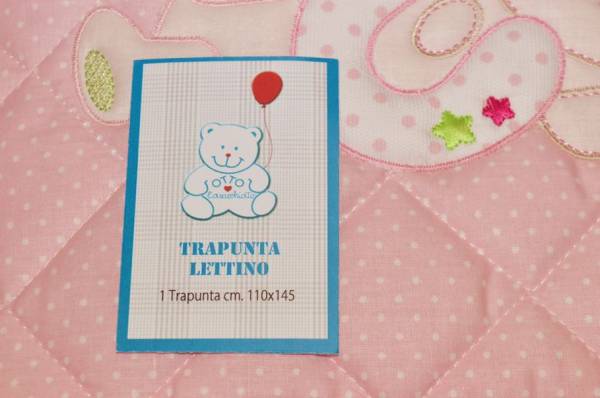 Composizione tessuto 100%cotone. Misura trapunta 110x145 cm.