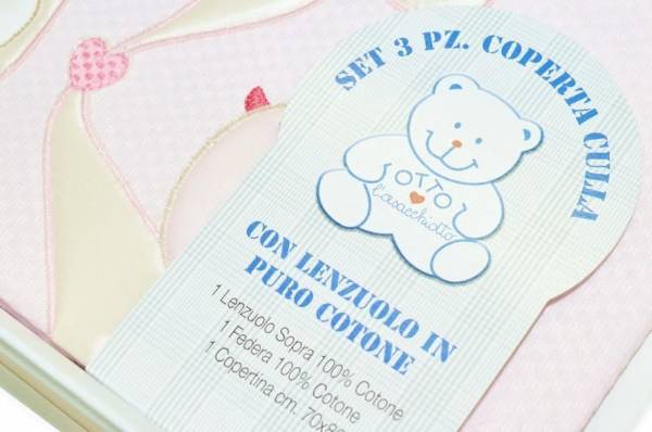 SET 3 PEZZI COPERTA CULLA DISEGNO FIOCCO ROSA