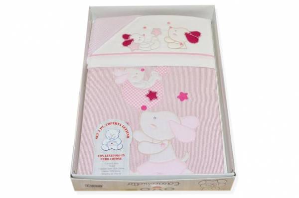 Vendita online biancheria per la casa lettino bimbo set 3 pezzi coperta lettino disegno cagnolino rosa - Tessuti & Stoffe