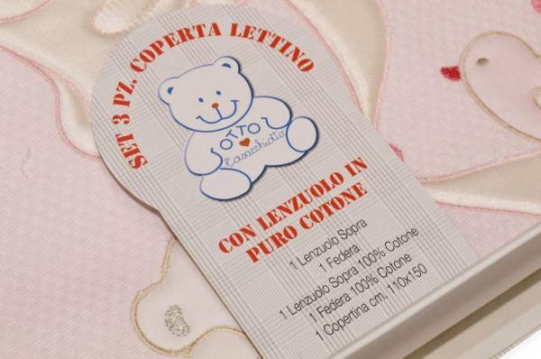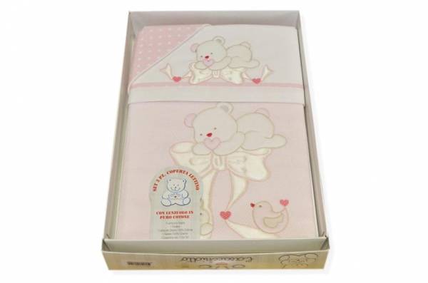 Vendita online biancheria per la casa lettino bimbo set 3 pezzi coperta lettino disegno fiocco rosa - Tessuti & Stoffe
