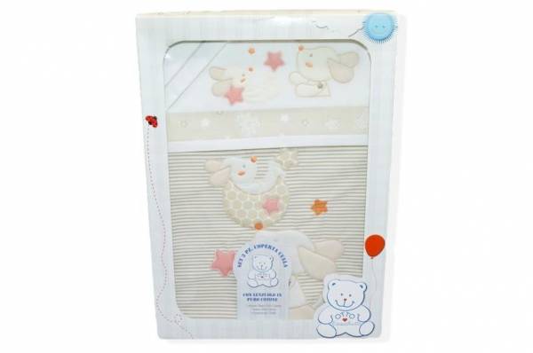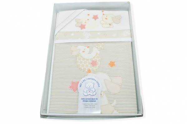SET 3 PEZZI COPERTA CULLA DISEGNO CAGNOLINO BEIGE