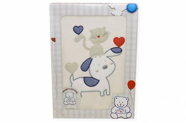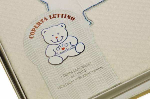 Composizione tessuto esterno 100%cotone, imbottitura 100%poliestere. Misura coperta 110x150 cm.